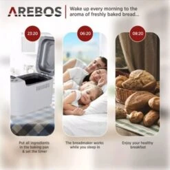 AREBOS Bread Maker 1500g With 15 Programs 2 Dough Hooks Timer LCD Display 3 Browning Degrees And Bread Sizes 850 W White