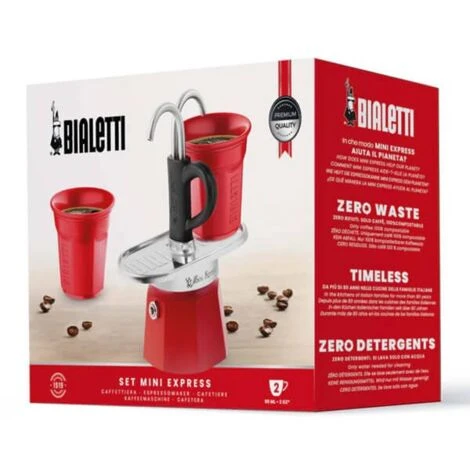 This Bialetti Mini Express stovetop coffee pot has a double serve function allowing 2 cups of espresso coffee to be served simultaneously.
