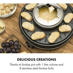 A cool-touch handle provides safe use whilst power-on and ready-to-cook indicators take any guesswork out of when the machine is ready to use.