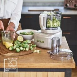 The Cuisinart Style Collection Easy Prep Pro includes two bowls – the larger has a 1.9L capacity for use with the large chopping/mixing blade or slicing/grating discs. For smaller chopping and mixing tasks there’s a 0.7L fully sealed inner bowl that does not leak into the large bowl beneath (so there’s less washing up required!)