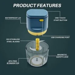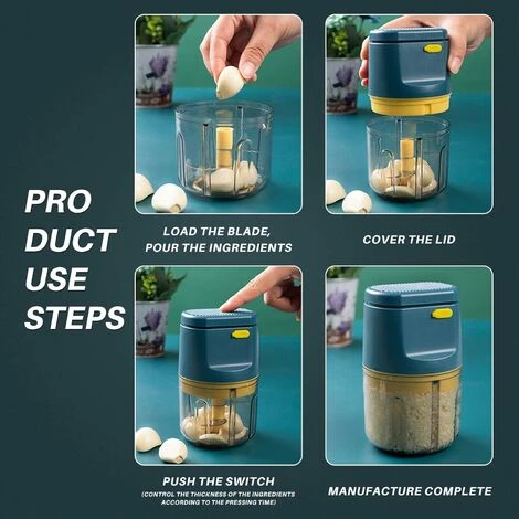 [Easy to use; to Clean and Carry] Using high-quality ABS and PC materials, all parts of the mini electric shredder can be removed (cover, blade and bowl), and the whole body is made of tench. Easy to clean, format (250 ml) and easy to clean. Storage, it is very suitable for family kitchen, family dinner, outdoor picnic or travel. (Note: Pay attention to the blade when washing)[Powerful function and easy to clean. to use] The grinder is convenient for crushing and grinding various foods. For example: meat, onion, garlic, fruit, etc. And double security to electronic induction, switch design, click the button to control the degree; from crushing to will. Compared to other products, our operating noise and noise is the smallest. with sockets, power banks, computers, etc., say goodbye to wiring limitations, small and easy to maintain. wear, not only can be used; at home, but also ideal for picnics, trips and RVs.[Quality material; food] This food chopper; wearable flesh is made to Made of high quality PP and ABS materials. Food safe, BPA free. High quality kitchen mug plates and platters made of SUS304 food grade stainless steel. Food is healthy and hygienic. other household products, kitchen cups are stronger and more refined!