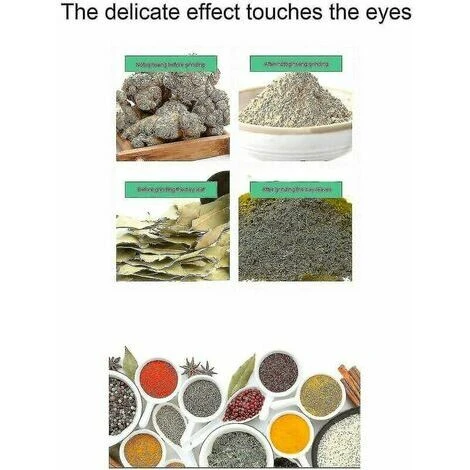 One machine with multiple functions: the multifunctional grinder is suitable for cereals, beans and condiments. DIY with your favorite coffee or other foods. The best life assistant. [Stainless Steel]: Food grade stainless steel cutter head, fast and even grinding. It is very suitable for controlling the roughness to fineness of coffee beans in seconds. Many Chinese herbal medicines need to avoid iron. [Transparent Lid]: The transparent lid allows you to observe the grinding process and form a coarse or fine powder. Smooth and easy to clean; crushing different drugs will never produce color and smell. [Easy to use]: Press the on/off button to start grinding, loosen it to stop. operation is simple, no professional training is required; the free gear cover with cover is easy to open and it is more convenient to press the last button [low noise]: the specially designed grinder takes up very little space and the silent motor allows your family to sleep peacefully while preparing the little one lunch. cups.