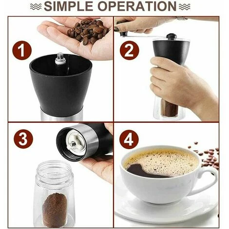 The handle of the ceramic coffee grinder is made of stainless steel, comfortable to hold, durable and non-slip.And the length ratio is designed to be reasonable, so it is easy and effortless to grind, easy to enjoy the fun of hand grinding