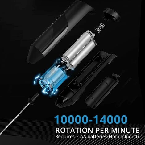 - Easy to Clean and Store: The durable and convenient metal stand provides easy access for a good lather in seconds. Cleaning this matcha frother is even faster. To clean, simply put the whisk in running hot water and turn it on briefly – Clean instantly When stored on a counter or table, it sits nicely next to other coffee accessories . Our powerful and durable handheld milk frother is powered by two AA batteries (not included, alkaline batteries are recommended) with a compact electric design that easily fits in a drawer.