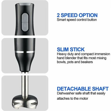 【All the recipes you imagined are now possible】The hand blender allows you to prepare a wide variety of delicious recipes and guarantees perfect results. The 400 W power of this blender ensures optimal and fast performance. The mixer foot has two high quality stainless steel blades for smooth and homogeneous results and two speeds to meet all your cooking needs.