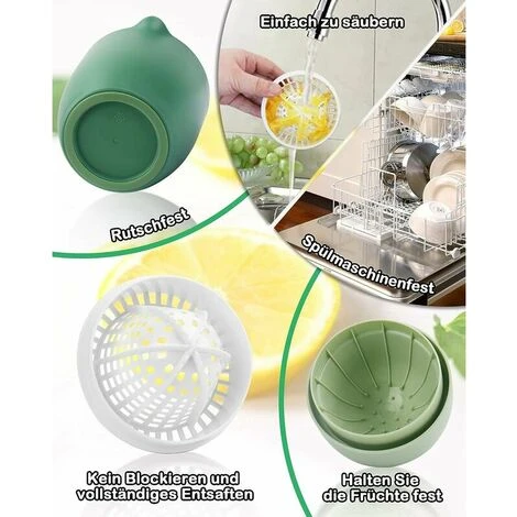 Excellent performance Two ways to use this manual juicer is not only suitable for citrus fruits, but also for grapes, pomegranate, etc. The lid of the manual juicer can firmly hold the fruit and keep your hands clean. Two cones are sharp enough for full juice but harmless to your hands, with plenty of holes to prevent juice from getting stuck. The juice container has a convenient spout for pouring juice and a non-slip seal.