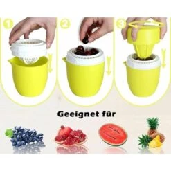Unique design The interesting lemon shape makes this nice and small manual juicer different from others. Three kinds of colors can be chosen: soft pink, bright green and bright yellow. With exquisite packaging, the manual juicer will bring your kitchen a distinctive style.