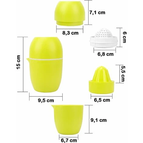 Unique Design The interesting lemon shape makes this cute and small manual juicer different from others. Three kinds of colors can be chosen: soft pink, bright green and bright yellow. With exquisite packaging, the manual juicer will bring