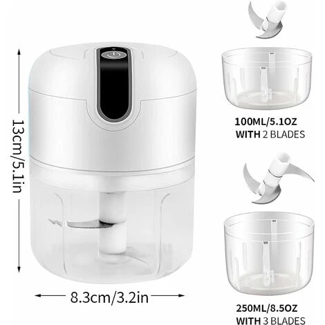 TWO BOWLS IN ONE PACK: The mini electric chopper is a great helper in the kitchen for everyone. Our electric chopper has two bowls (250ml and 100ml) that you can use to chop nuts , ginger, garlic, onion and other vegetables.