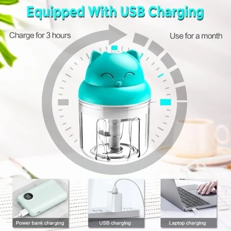 Multifonctionnel – Mini hachoir : le coupe-légumes électrique dispose de 3 lames renforcées qui vous permettent de hacher l’ail, le gingembre, le piment, les légumes, la viande, les oignons, mais aussi comme machine à compléments pour bébé et presse-agrumes. (Veuillez couper les ingrédients en petits morceaux avant de les hacher)