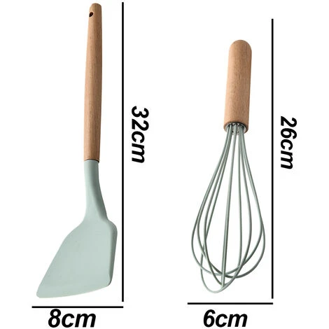 3. EASY CLEAN QUALITY WOODEN HANDLES – This quality silicone kitchen utensil set is easy to clean, just wipe under warm water. The high quality wooden handle won’t bend or rust and completely reduce heat transfer during cooking to prevent burning your hands. Convenient hanging hole design allows for easy storage using hooks or wall hangings. 4.2 silicone kitchen utensil set includes flexible spatulas, soup spoons, serving spoons, pasta dishes, spatulas, tongs, measuring cups and spoons and more. Meet your different kitchen needs, you don’t need to spend a lot of money to buy each utensil individually. If you have any questions about our cutlery sets, please do not hesitate to contact our customer service and we will be happy to help you!