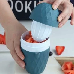 【Presse-Agrumes Portable】 La taille de l’extracteur est de 16 cm de hauteur et 8,5 cm de largeur, ce qui est petit et léger. Il fonctionne sans électricité et est très pratique à transporter en voyage et en camping.