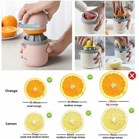 Important-This machine is a portable manual juicer, and the forward juicer is suitable for fruits with a diameter of less than 80 mm; Please do not attempt to juice hard fruits with low juice yields like apples with this manual juicer. inefficient and laborious juicing is not what a manual juicer should bring to users.