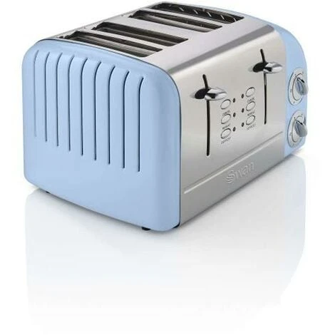 Swan 4 Slice Toaster Blue 1950s Retro-Style 6 Setting With Crumb Tray ST34020BLN