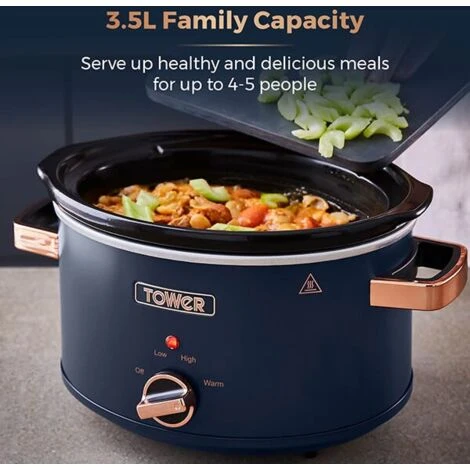 This elegant slow cooker is styled with a midnight blue and rose gold finish which fits perfectly suits and contemporary or modern kitchen. Complete with a 1 year manufacturer’s guarantee which can be extended by an additional 2 years when you register the product online.