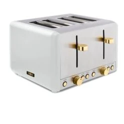 The Tower Cavaletto optic white 4 slice stainless steel toaster has a contemporary matt optic white finish with elegant gold accents adding style to your kitchen and fits in with the coordinating Cavaletto range (sold seperately).