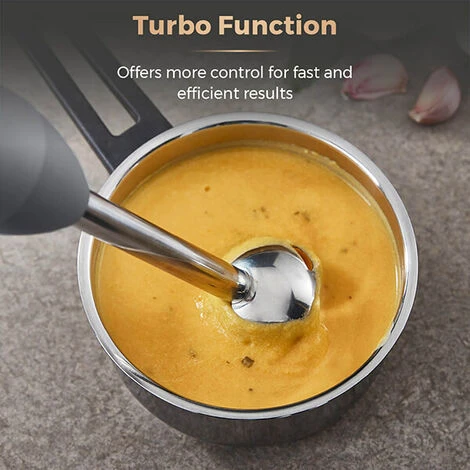 The handle and body of the stick blender features a soft touch non-slip coating for comfort and great control for the very best performance.
