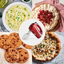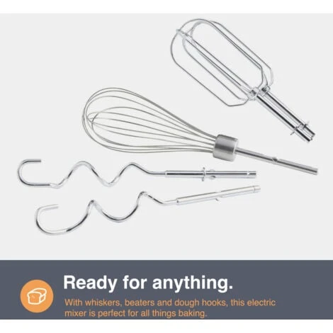 VonShef Professional 300W Hand Mixer, Red, Includes Chrome Beaters, Dough Hooks, Balloon Whisk + 5 Speed With Turbo Button